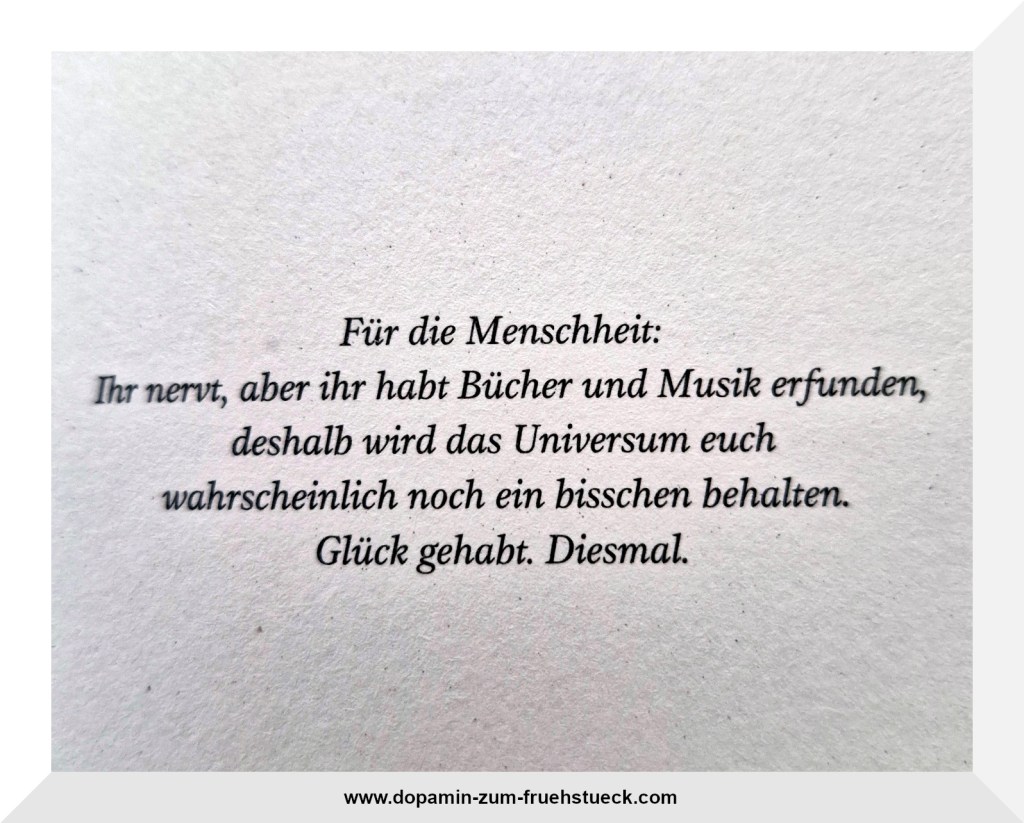 Eines der Bücher in diesem Jahr, die mich wirklich überrascht und zum Nachdenken gebracht haben. Mittlerweile ist es zu einem Buch geworden, welches ich sehr gerne verschenke. Ich glaube, jeder Mensch sollte dieses Buch einmal gelesen haben, denn Tessa Randau geht auf gefühlvolle Weise an vier wichtige Fragen des Lebens heran.